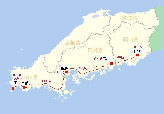 新幹線で岡山まで行き、岡山駅をスタートし下関まで完走した。