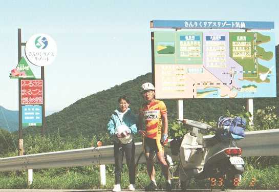 スポ-ツをやらない妻が私と一緒に走るために選んだものは50ccスク-タ-[ヤマハ・ミント]でした。そして1993年の夏、妻の実家が白石(宮城県)であることから、そこを起点として2人で東北一周してみるか、ということになった。約1200kmの距離を走るのはもちろん初体験。冷夏と長雨が騒がれていただけに、天候の心配をしながらも夏休みの8月1日をスタ-トと決めた。